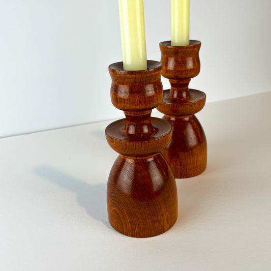 Mid Century Wooden Candlestick Holders - Set of 2